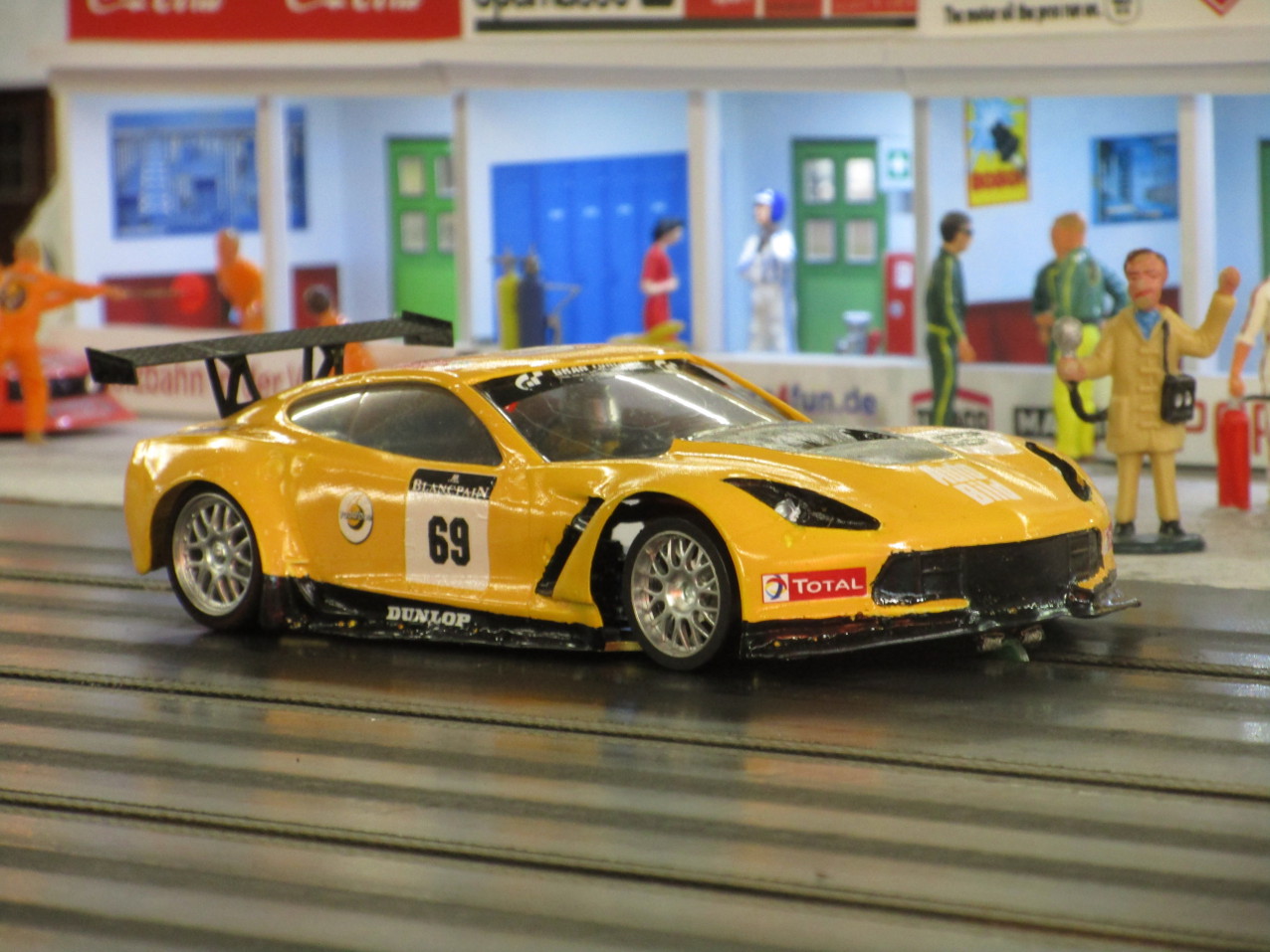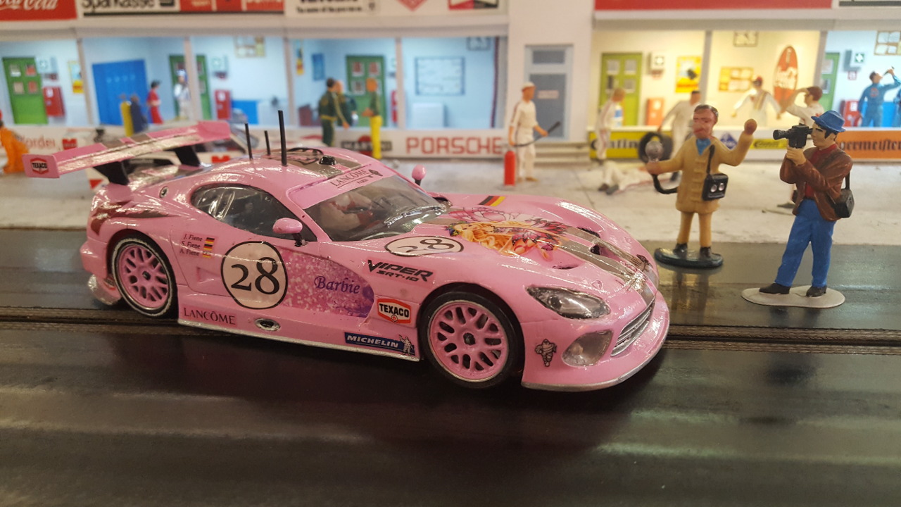 Am Wochenende steht immer mal ein Slotcar am Frühstückstisch, das sich gerade im Aufbau befindet. Meine Töchter haben mich mehrfach gebeten, einmal ein Slotcar für Mädchen zu bauen. Die Wunschfarbe Rosa ist dabei Grundvoraussetzung. Also habe ich meine Damen gebeten, sich auch über die Werbeträger und Decals Gedanken zu machen. Herausgekommen ist eine Baby-Viper, die trotz des weichen Gesamteindruckes mächtig flot abgeht - echte Frauen-Power also. Das Auto wird von meinen Mädchen hin und wieder gefahren. Ich bin Ihnen dankbar für dieses schöne Projekt.