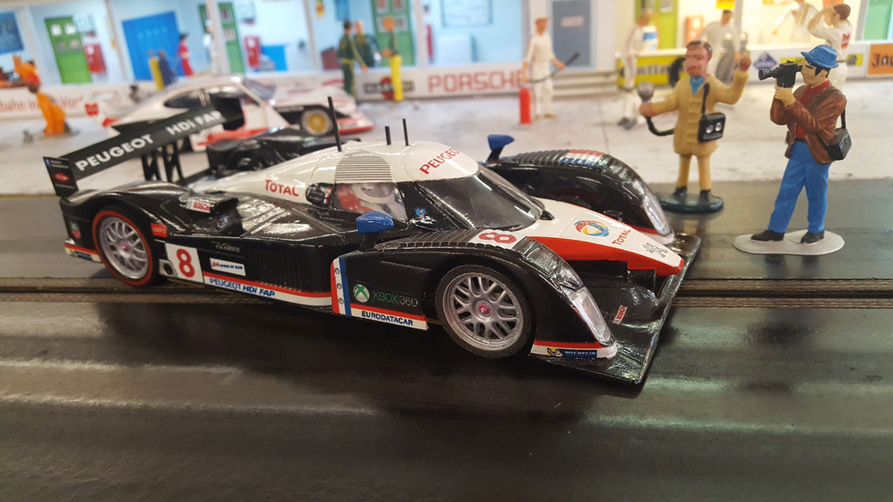 Der Peugeot 908 HDi FAP ist ein Sportwagen Prototype für Langstreckenrennen. Das Fahrzeug wurde zwischen 2007 und 2010 eingesetzt. Es wurde von einem V12 Dieselmotor mit 5,5L Hubraum angetrieben, der ca. 515kW (700PS) Leistung hatte. Das Fahrzeug in dieser Lackierung erzielte einen 2ten Platz beim 24h Rennen in Le Mans in 2007. (Quelle: Wikipedia) Die Karosserie und die Decals sind aus einem Metallmodell M 1:24 heraus entwickelt.